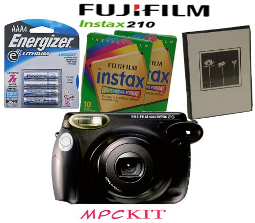 - The Fujifilm Instax 210 Instant Photo Camera with its rounded shape, easy-to-hold side grip and fingertip controllable composite control panel, offers vivid, high-quality prints almost instantly. Its automatically-adjusting flash, high-resolution retracting lens and big clear viewfinder add up to unsurpassed performance.